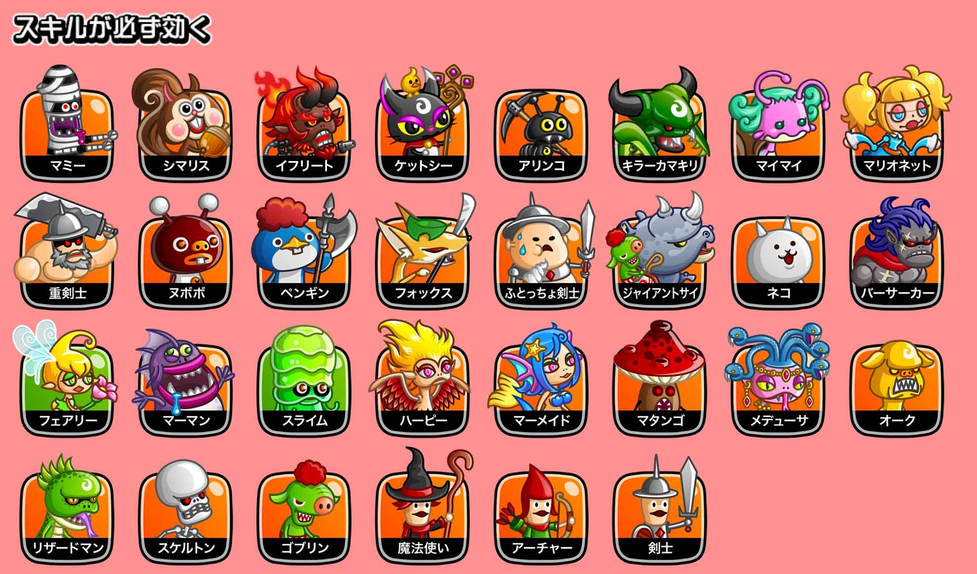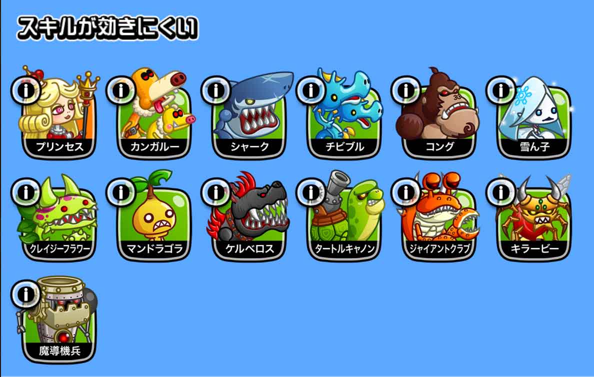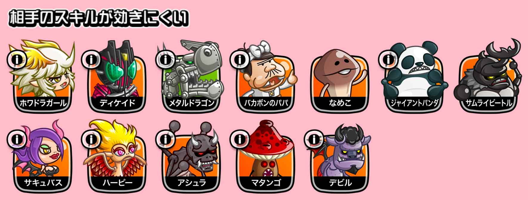 相性を見る限り、スキルが必ず有効な相手(石柱によるふっとばし)は