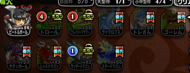 孵化したキャラは育成が必要で、特に中型に関しては補欠でない場合ランダムで選出されます