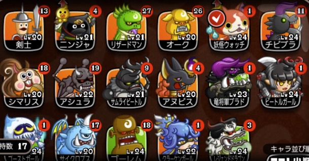 中型のキャラ数(剣士含む):13